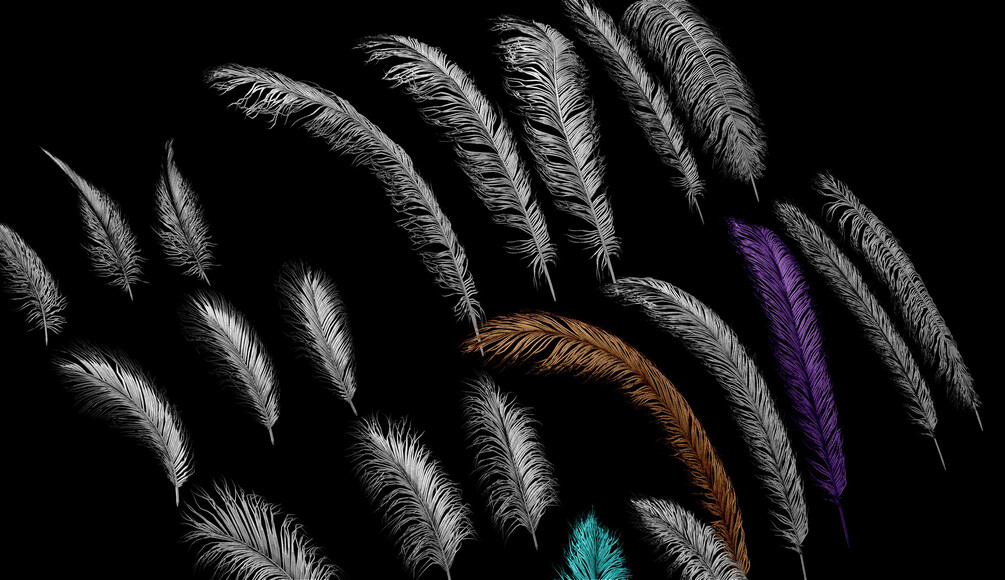 An IMM brush with 27 individual feathers (ZBrush 2022.0.5 and up)