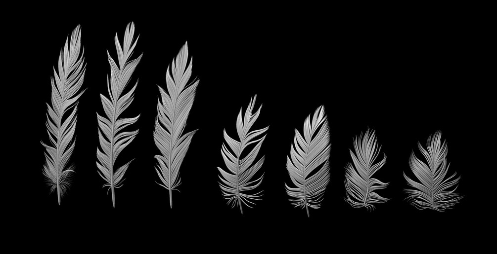 An IMM brush with 17 individual feathers (ZBrush 2020.1 and up)