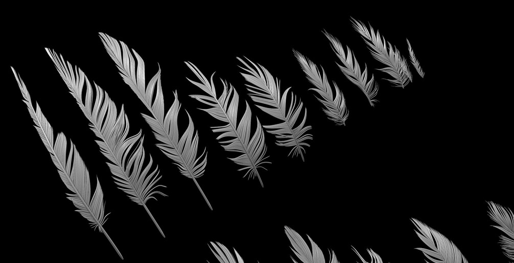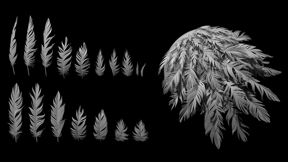 An IMM brush with all the feathers decimated down for heavy scenes (ZBrush 2020.1 and up)
